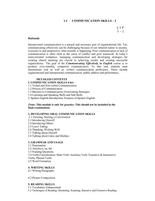 1 1 Communication Skills A I L T P 3 2 Hsbte